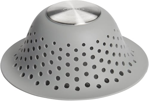 Eliminate costly plumbing house calls with this drain protector that traps hair and prevents clogs. Made from germ-resistant silicone and stainless steel, it features holes throughout to allow for water flow. It works with both flat drains and pop-up drains, and the weighted design means it stays put, even when the water starts running.