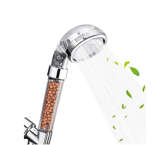 This stainless steel showerhead has multiple spray settings, including rainfall and massage modes, and it also filters your water, which may improve the look and feel of your skin and hair. It comes in four different colors, including clear and blue, and is easy to install, though note that the hose is not included.