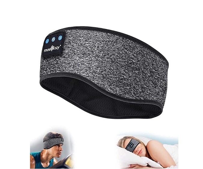 Fall asleep while listening to your favorite music or podcast with this headband, which features integrated noise-cancelling Bluetooth headphones. The headband is made from soft and stretchy materials, and can also be worn while working out. It comes with a micro USB cable, and has an IPX6 waterproof rating.