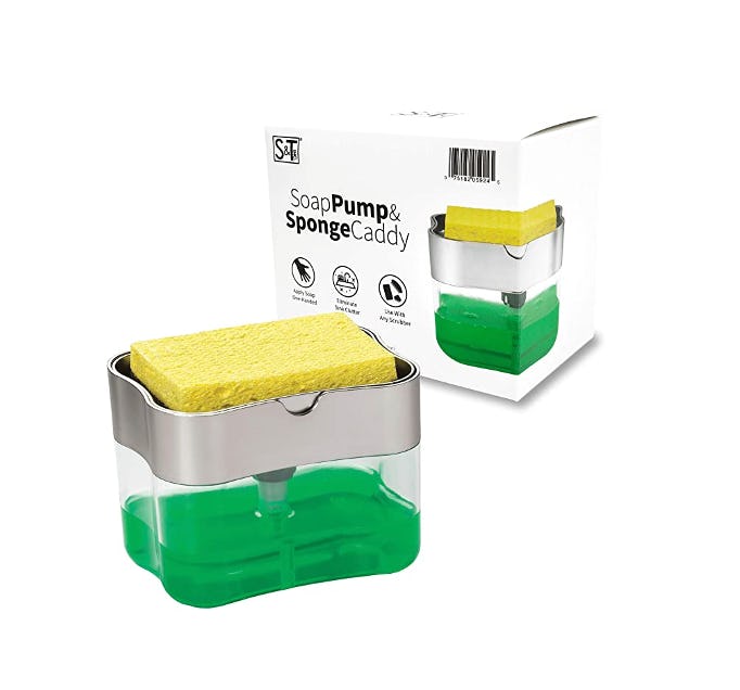 6. A clever sink caddy that pumps soap onto your sponge