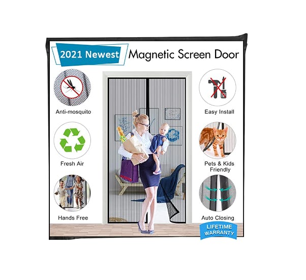 Perfect for homes with indoor/outdoor pets, or for hosting parties in your backyard, this magnetic screen door opens and closes by itself — all you have to do it walk through. It has a magnetic strip on the inside, and can be installed in minutes with adhesive hook and loop, which is included.