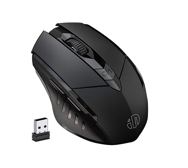 This rechargeable wireless mouse features a silent click button, so it’s especially great for anyone who works out of a library, open-plan office, or other shared space. It has an adjustable DPI, a scroll wheel, and two additional side buttons. It’s compatible with Windows, Vista, and Mac operating systems.