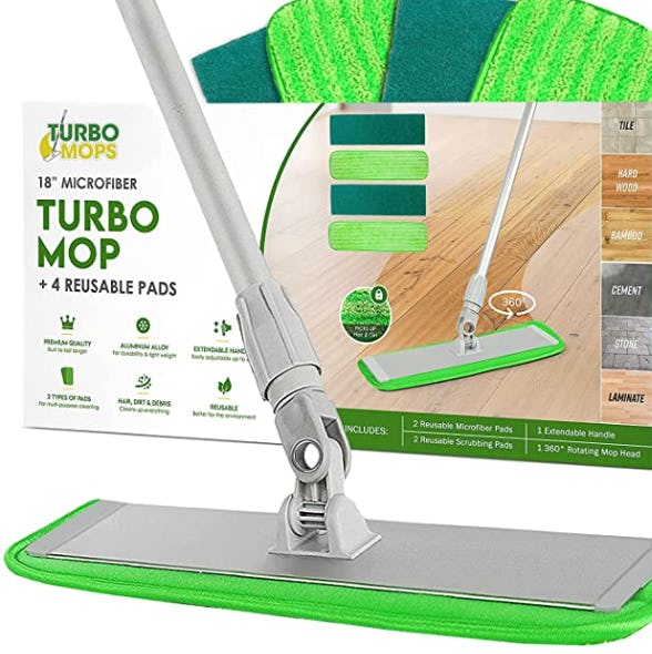 This microfiber mop system makes keeping your hard floors clean so simple and easy. Spilled something? The microfiber pad will wipe that right up. Dust bunnies? The pad is like a dust magnet. You can even lay down some spray cleaner of your choice and use it to clean the floors. The head swivels 360 degrees to get into tight corners (and so it stores flat) and the handle extends from 35 to 60 inches. It comes with four machine-washable mop pads so you can switch them out whenever you need.