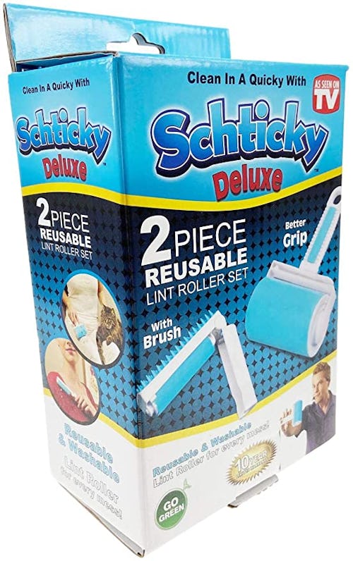 u/LadyKlaymoor writes that the Schticky lint roller is a "damn good product" with the "best infomercial ever." Instead of disposable sheets, it has a washable, reusable material that picks up lint, hair, and pilling — and then rinses clean so you can use it again. This two-piece set also comes with a mini one that has a built-in brush attachment.