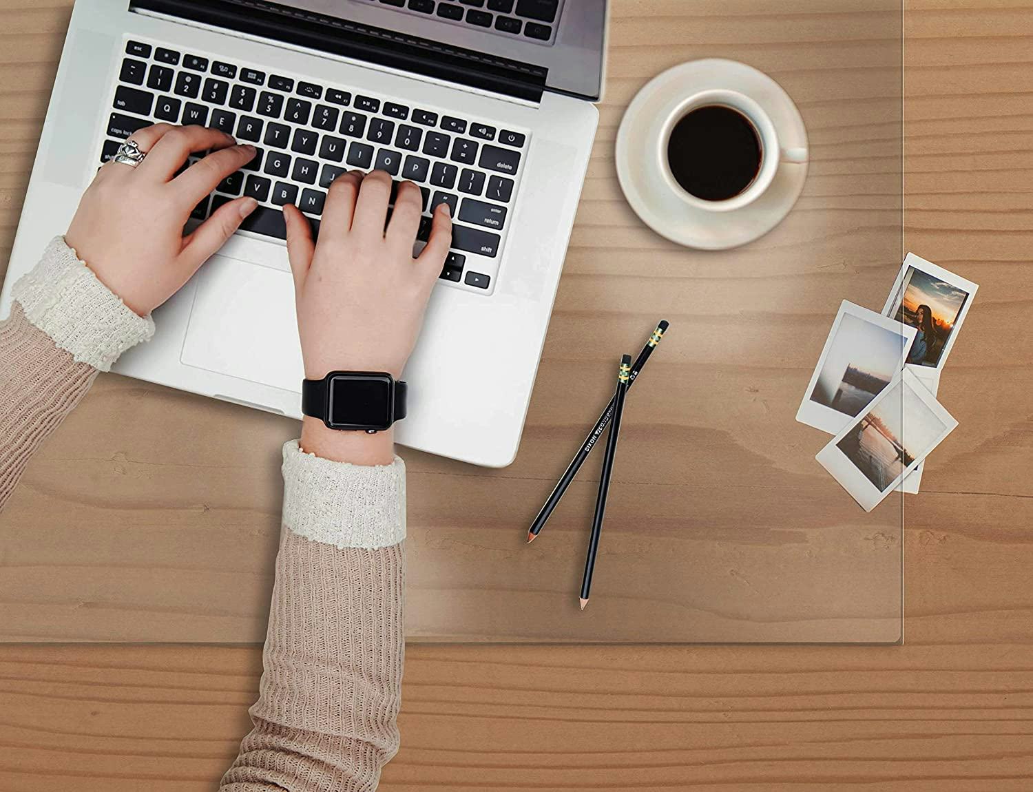 If you put a lot of wear and tear on your tabletops when you work from home, it's a good idea to invest in a desk pad. This one is made from heavy-duty clear 0.8-millimeter plastic that protects against spills, scuffs, and scratches. It comes in four sizes and is safe for wood, glass, metal, granite, and marble surfaces.