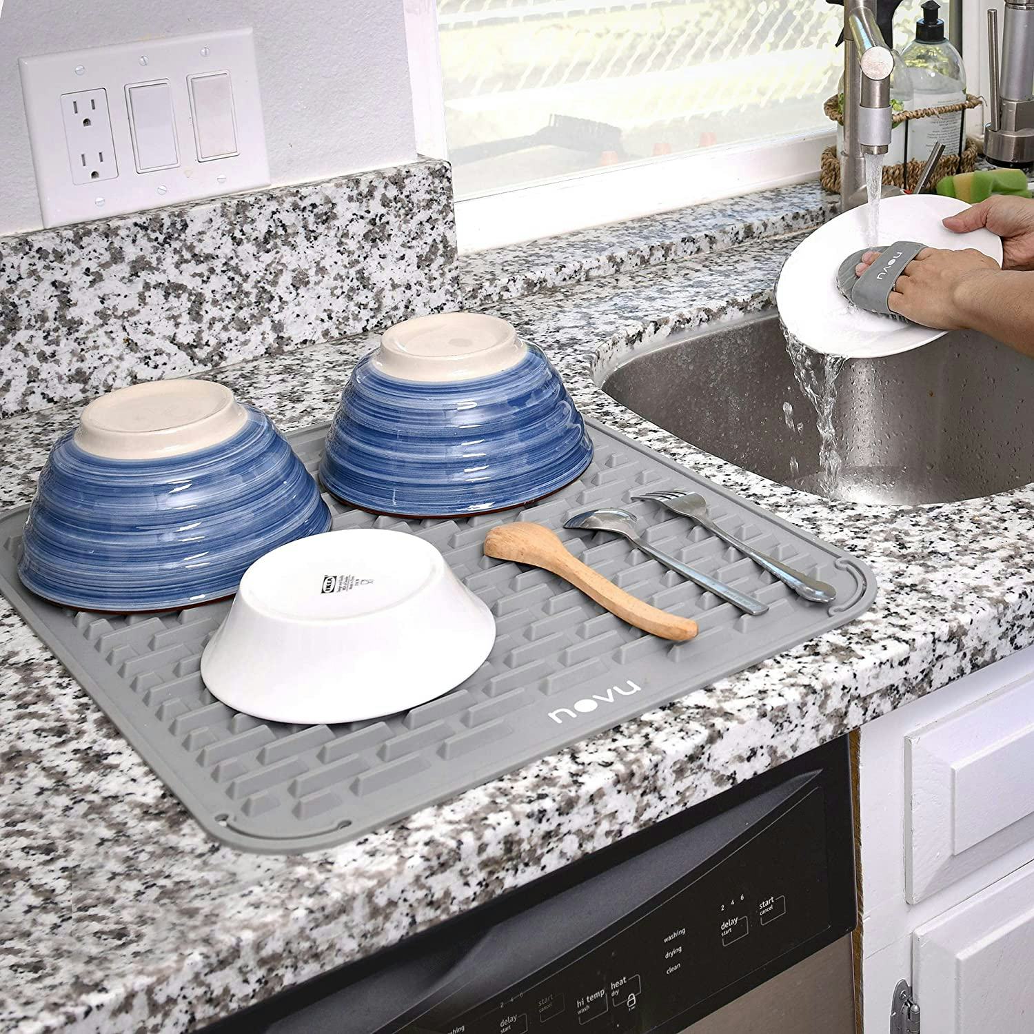 If you hate putting away glasses that still have condensation, this silicone dish drying mat has 7-millimeter raised ridges that are perfect for bowls, pots, and delicate glassware. I have this dish mat, and now I can't live without it. It's made from food-grade BPA-free silicone, and since it's heat-resistant, it's also a great place to put still-hot pots and pans. After you use it, give it a quick rinse and let it dry.