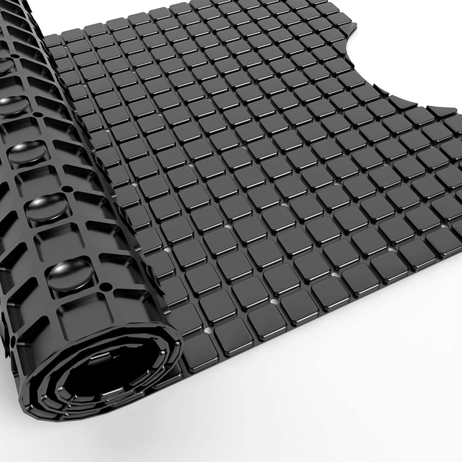 This extra-large nonslip bath and shower mat has hundreds of suction cups that keep it firmly in place. It has a soft upper that is comfortable to stand on, and drain holes that eliminate standing water. The best part about this mat is that it is also machine-washable, so you can throw it in with your laundry and keep it looking and feeling fresh.