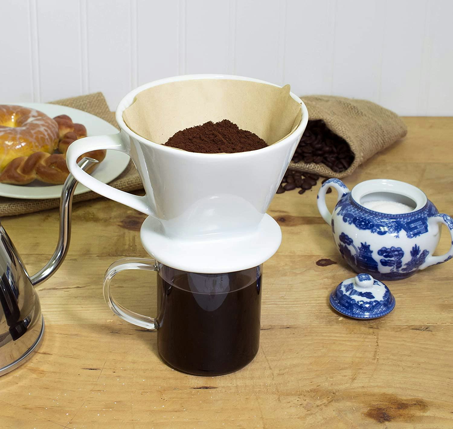 If you're short on space or need a portable way to brew a cup of joe, check out this pour-over coffee maker. Made of dishwasher-safe porcelain, it's designed to help you brew the exact amount of coffee you want, even if that's just one cup — no power outlet required. To use, just place a size 4 cone filter inside, add your grounds and wet them with hot water, wait 15 to 30 seconds so that the coffee can bloom, then steadily pour the rest of the hot water over the grounds. It's that easy.