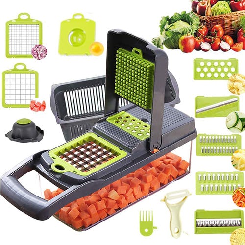 Just put an onion, tomato, carrot, or other vegetable on the grid of your choice within this vegetable slicer, and then close the lid. You'll get a container of perfectly shaped vegetables almost immediately. It has so many cutting grids that you can choose from (like shredding, mashing, slicing, and more). It's also a terrific cheese grater — and it'll even separate an egg.