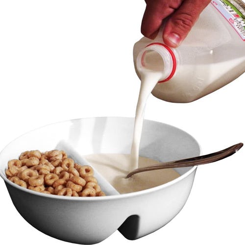 Do you like your cereal crunchy? Normally, that's a race with time — but not with this bowl. Put the cereal on one side, and pour the milk on the other. Settle in and take your time. You can mix your Captain Crunch with the milk spoon by spoon. Your granola will never get soggy and melt into the milk. You have all the control.