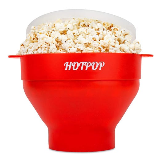 I was once an expert at making popcorn in a pan from kernels. And then I got one of these BPA-free silicone bowls. Now, two minutes is all I need to make a perfect batch. There is no skill involved; making popcorn this way is also much better than store-bought microwave popcorn, because you get to choose your own oil and kernels — and you'll probably leave out the unpronounceable chemicals. The cleanup is super easy, too. Just put it in the dishwasher.