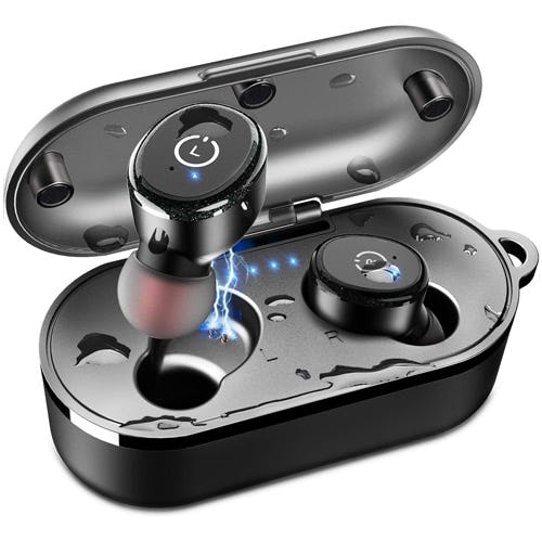 Wires are so annoying when you're trying to run or bike while listening to music. These waterproof earbuds don't have wires, though. Instead, they use Bluetooth to connect to your phone. They link up wirelessly, and they even charge wirelessly (all thanks to the charging case). For this price and the sound quality that reviewers describe as "impeccable," this purchase is a no-brainer.