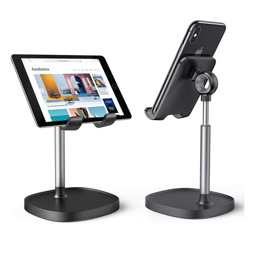 A cell phone that's lying on its back atop your desk is not pulling it's weight. In fact, it's distracting. You have to pick it up to see who's texting or calling and hold it in one hand to do a video or voice call. This stand lifts it up to free your hands so you can see your phone, talk to it, and be seen by its camera. This is must for modern telecommunications. It adjust in height and angle, and it's strong enough to hold a tablet.