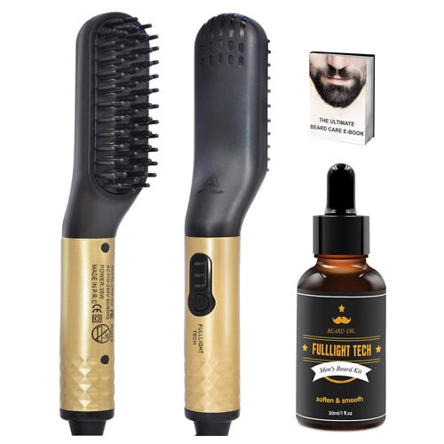 If your beard has a tendency to get a bit wild and unruly, tame it with this hot beard straightener. It's easy to use: Just let it warm up, and then brush your beard with it. The heated ceramic teeth are protected by longer, plastic teeth for protection. Apply the included beard oil afterwards, and you'll be all set. It only takes a few minutes, and it comes with a beard care book that's full of helpful advice.