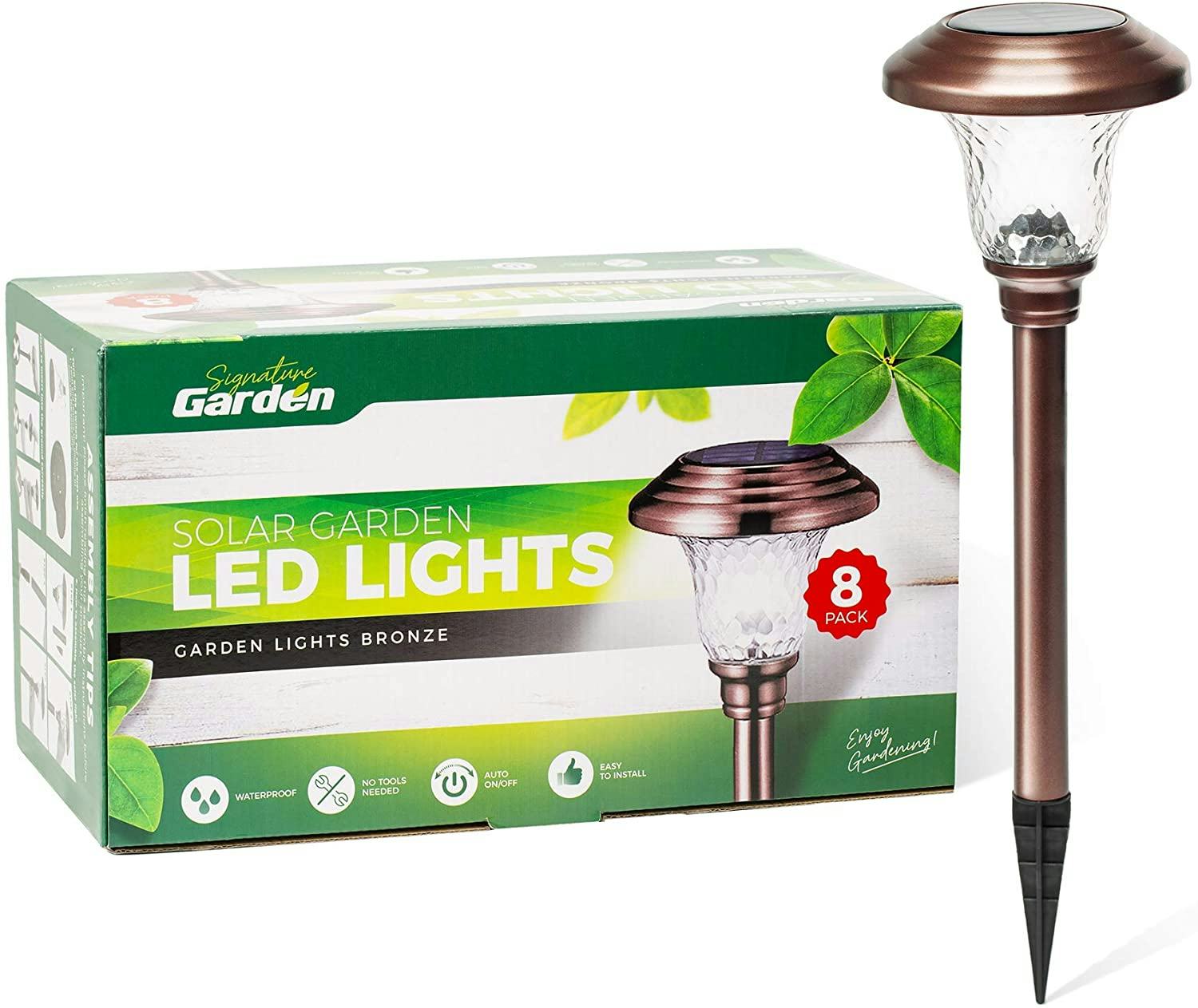 Looking for affordable ways to decorate your patio? These garden lights are made from rust-resistant stainless steel, and come in two gorgeous finishes: bronze or silver. Each one also has a built-in solar panel, so there’s no need for any complicated wiring when you’re setting them up.