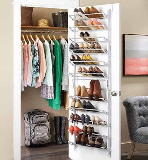 If the floor of your closet is full up, this over-the-door shoe rack is a great place to store your kicks. With space for up to 36 pairs, it features nonslip steel bars that are height-adjustable, so you can accommodate heels and taller boots, as well as sneakers and flats. Plus, the rack features pads to prevent any potential door damage.