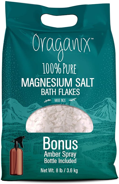 For a relaxing soak with therapeutic benefits, add these magnesium salt flakes to your next bath. Magnesium chloride can help relax tense muscles, soothe sore joints, and even help promote a state of mental relaxation and sleepiness. No time for a full bath? You'll also get an amber glass spray bottle — combine the magnesium flakes with some water and spritz your body before turning in for the night.