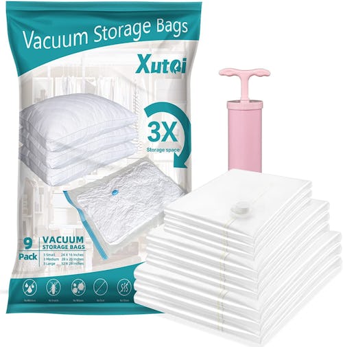 Instead of dedicating so much space to storing out-of-season clothes and comforters, use these vacuum storage bags to compress everything down to a compact size. Each bag reduces volume by up to 80%, and you can use the included hand pump or your household vacuum to suck out the air before pinching the double-zipper seal closed.