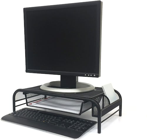 Not only does this laptop and monitor stand elevate your screen to a comfortable eye level, but it also gives you a bit more storage space on your desk, thanks to the built-in shelf and two side storage compartments. Made from lightweight but sturdy mesh metal, it's available in nine colors, so you can add a pop of color or choose a stand that blends in.