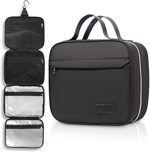 Boasting an impressive 4.8-star overall rating, this toiletry bag is outfitted with a hook, so you can hang it on a towel or shower rod and keep the countertop clutter-free. The waterproof bag also folds out to four separate panels, so you can get a good look at everything (and actually locate your razor and face wash).