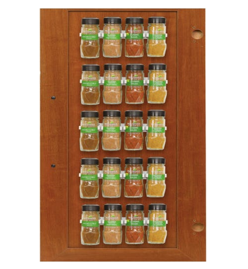 Here's a clever way to get some storage space back in your kitchen: these spice grips that mount to the inside of a cupboard door. The set comes with four strips that hold up to five spice jars each, and you can use the adhesive backing to place them right where they won't interfere with any shelves.