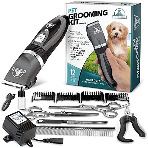 Give your dog a haircut at home with this pet grooming kit. It comes with cordless grooming clippers, two pairs of scissors, four guiding combs, a styling comb, nail clippers, and more, so you have everything you need to give your pup a fresh cut. It's also a fan-favorite on Amazon with thousands of five-star ratings.