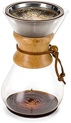 Skip the cafe and make delicious coffee at home with this pour-over coffee filter, which is made from stainless steel. It's designed to work with a range of carafes, including the popular Chemex and Bodum designs in certain sizes. If you don't own a carafe already, check out the carafe and filter option, which is only $26.