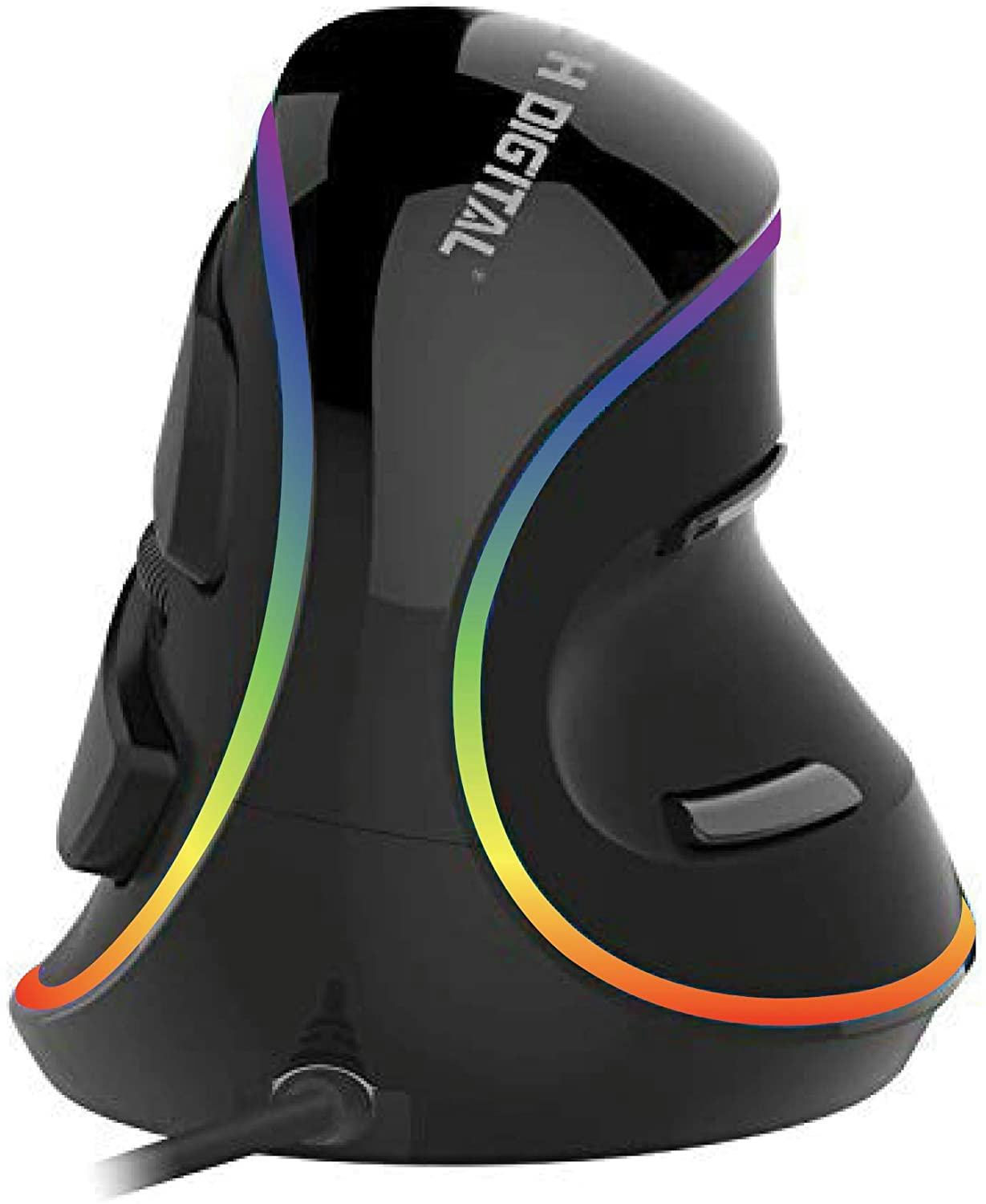 If you’ve ever experienced wrist pain or discomfort from computer use, then this vertical, ergonomic mouse might be a game changer. It offers your hand a more relaxed position, akin to a handshake, plus there are thumb buttons and a removable palm rest, too. Additional features also include a range of sensitivity options, and snazzy RGB LED lighting.