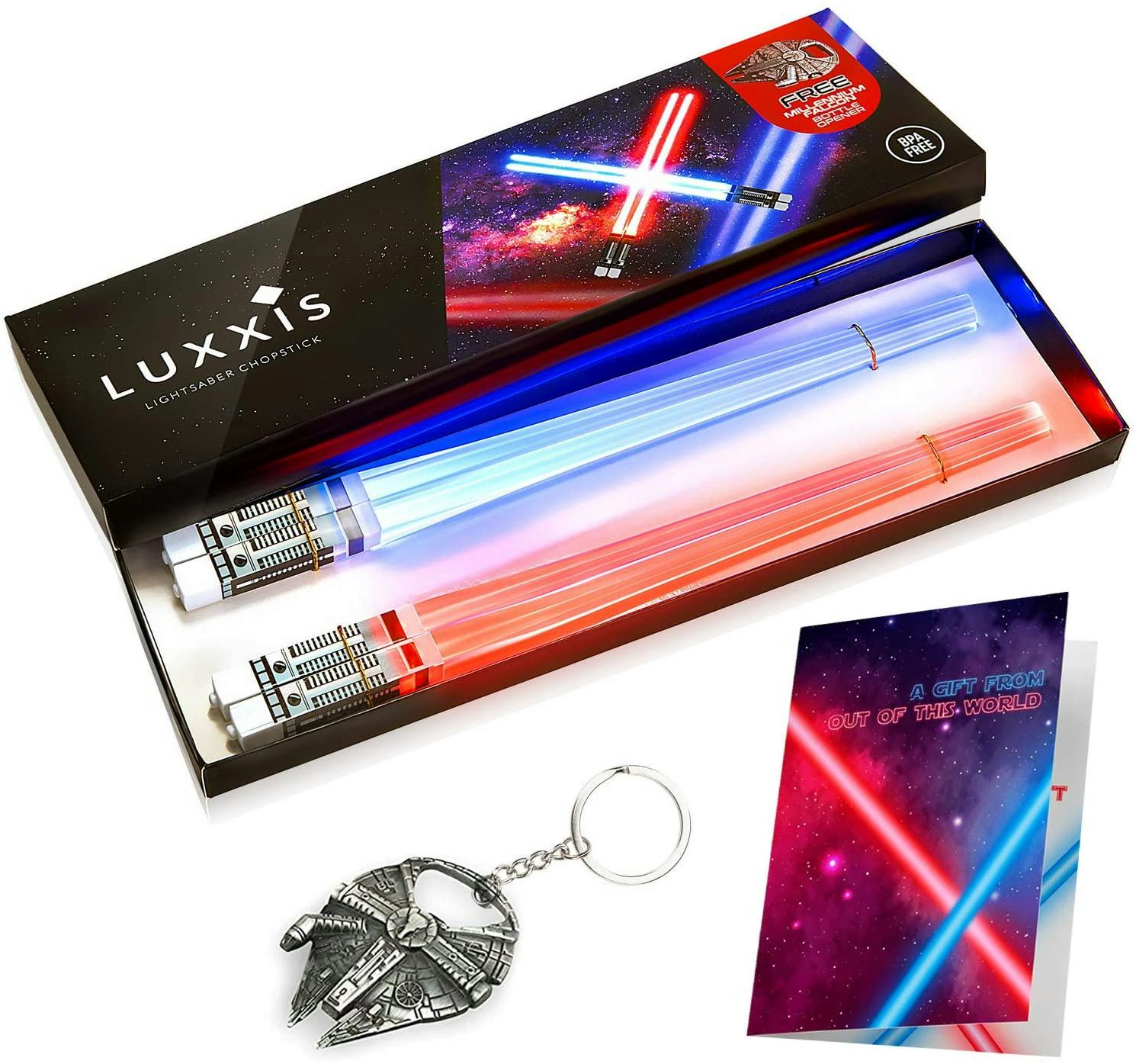 These reusable, light saber-inspired chopsticks come in packages of four, with either a red and blue pair, or green and purple. The BPA-plastic material is food-safe, so you can indeed use these for eating, or as accessories for your favorite Star Wars costume. Batteries are included, too.