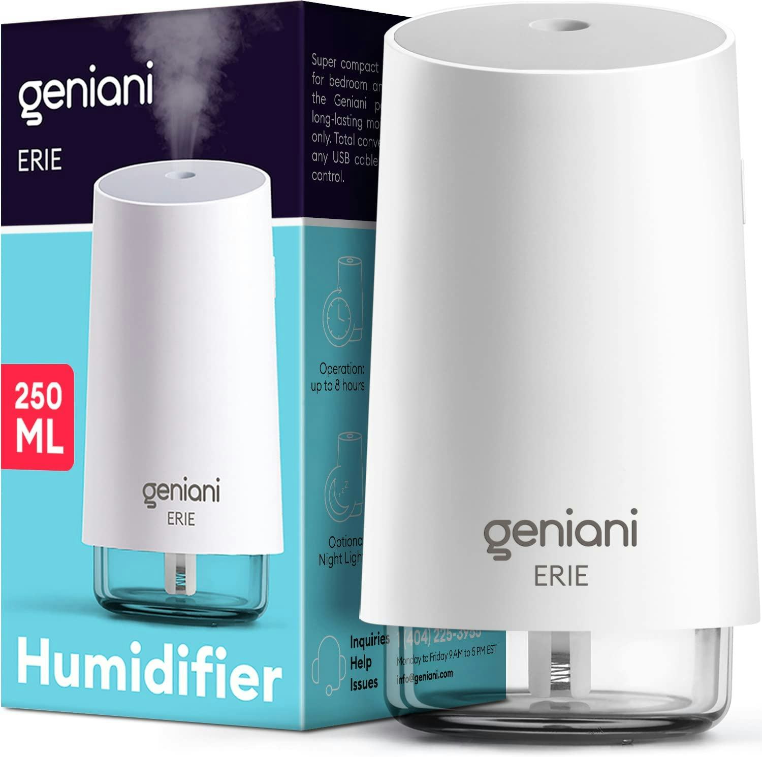 This portable cool mist humidifier allows you to enjoy the moisturizing benefits of a humidifier while at home or on the go. It’s powered by USB, so it’s versatile, and it can run for up to 8 hours per charge. It’s available in three colors (white, grey, or black), and it comes in two sizes (in case you want one that stays home, too). It has a 4.5-star rating.
