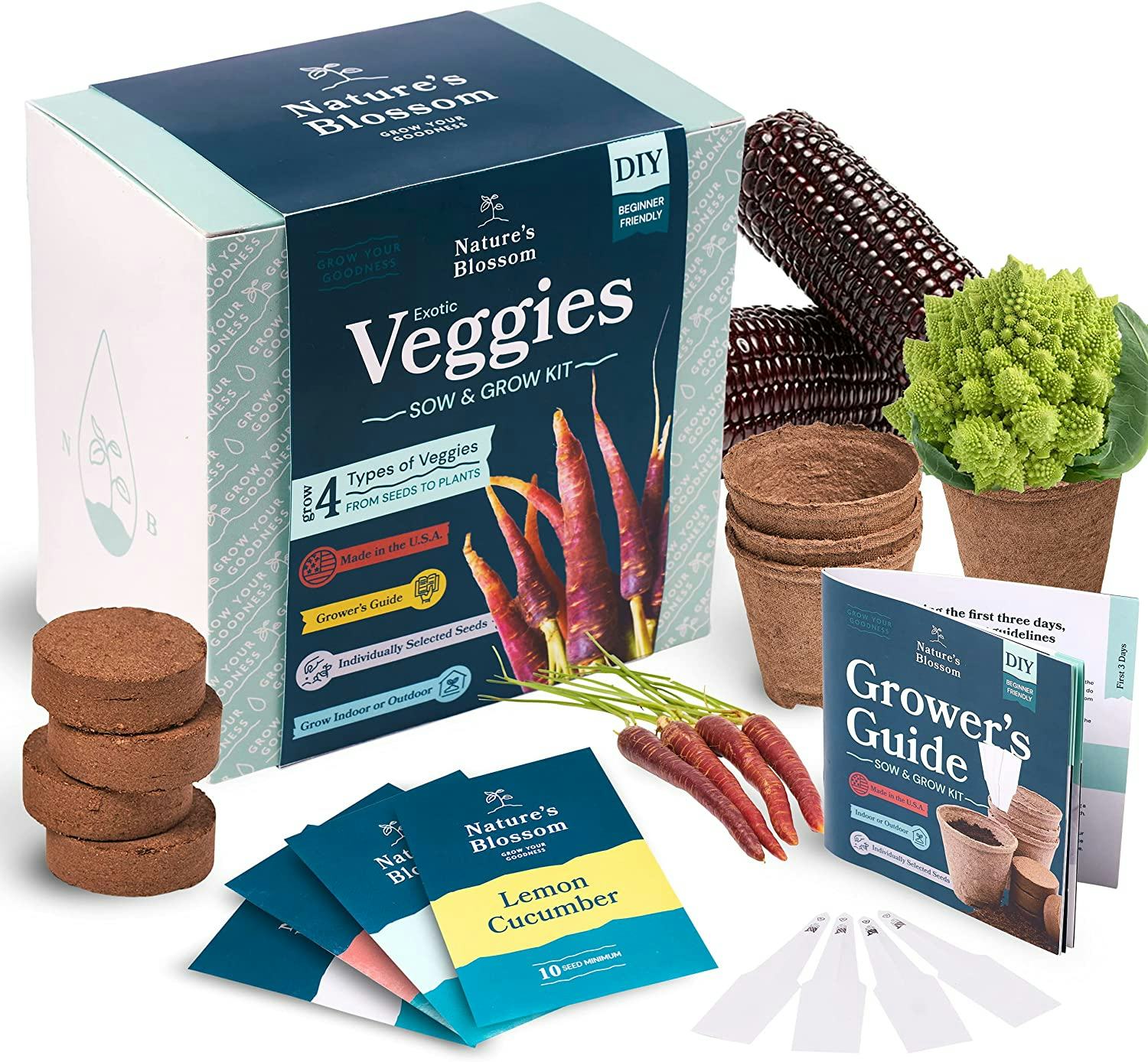 This garden kit has everything you need to jumpstart a colorful vegetable garden on a window sill or in the garden. There are seeds for black corn, purple carrots, yellow cucumbers, and space broccoli. IT comes with the pots you need, soil pucks, plant markers, and instructions. The pots are biodegradable so you can put them right in the ground when your plants are big enough.
