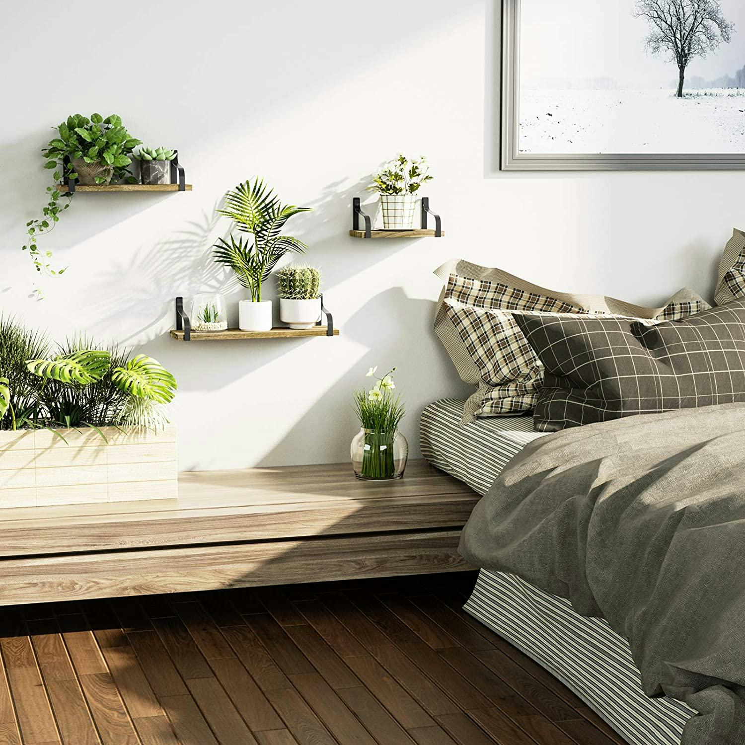 When you have more stuff than places to store it, these three floating wall shelves in different sizes create space by turning walls into decorative storage. They mount easily and look terrific in a grouping to hold everything from plants to bathroom supplies to books. Choose from eight wood finishes for exactly the look you want.
