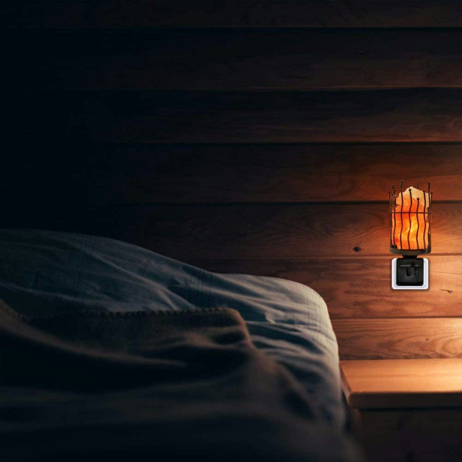Why have an ordinary night light when these Himalayan salt lights throw a warm, pink glow and create a romantic and calming atmosphere while lighting your way? These two lamps plug directly into a socket, rotate 360 degrees to fit whatever plug you use, and are housed in a decorative black metal frame.