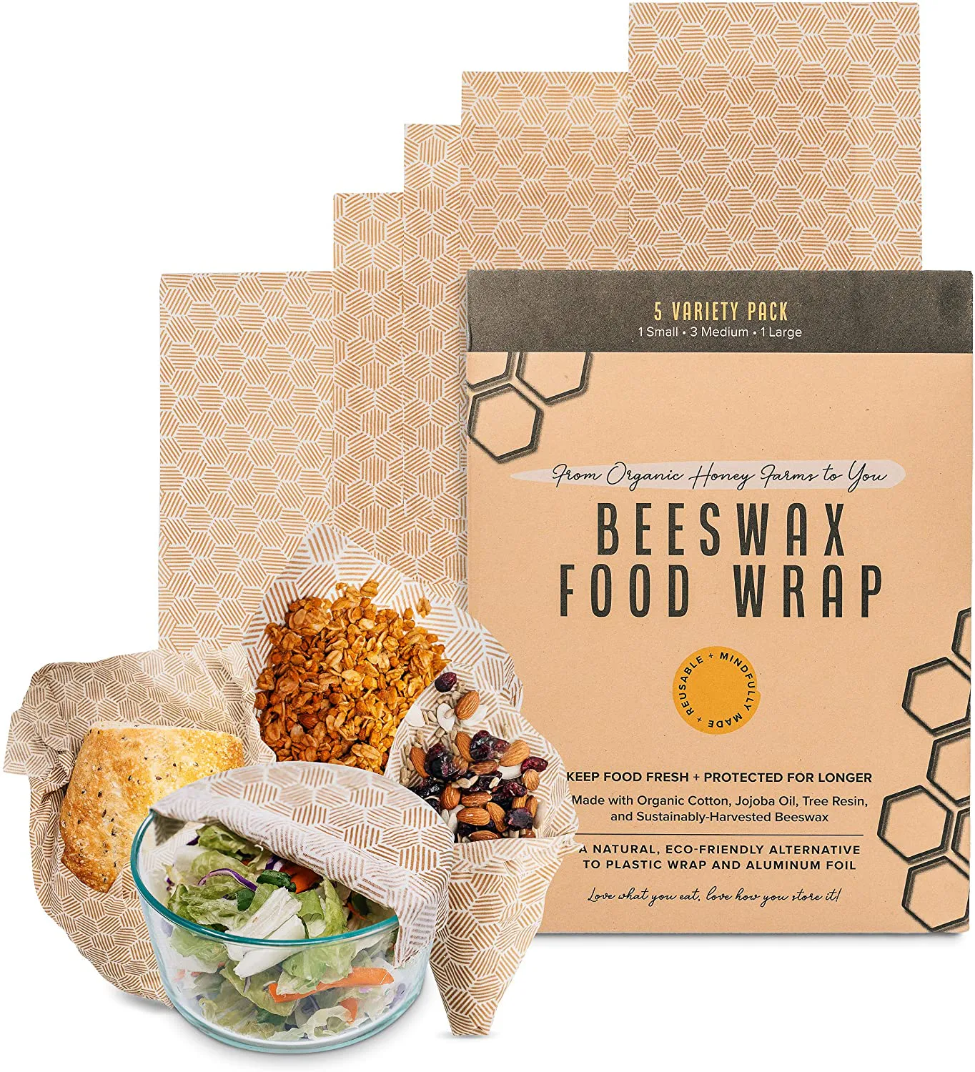 Just like with plastic wrap, you can cover any dish, wrap a sandwich, or wrap up a half of a lemon or tomato with this beeswax food wrap. It holds firmly, adheres to any shape, and shouldn't leak. Unlike plastic wrap, though, you can reuse each sheet for a year and toss it knowing that it's eco-friendly.
