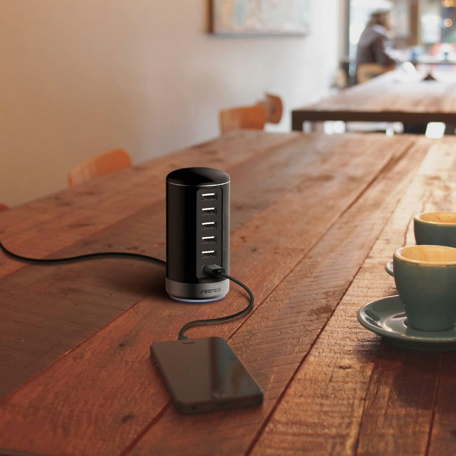 We have reached a stage in human evolution where a single USB plug on the bedside table won't cut it; two is the bare minimum — but more is better. This is the charging bar that's ideal to keep all over the house. It has six built-in USB ports, and it plugs into a wall outlet to keep the power flowing.