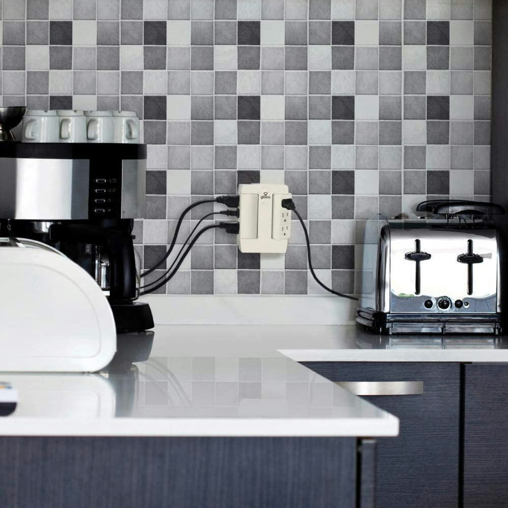 Do you have limited space but still need more outlets? This unique power station transforms a two-plug outlet into a six-plug outlet while lying flat against the wall. Each three-outlet block swivels so you can turn it to face you while you plug in. Then, you can swivel it so the wires come out the sides so the wires run against the wall.