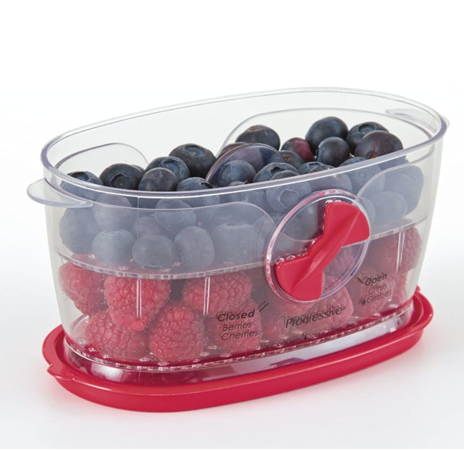 Berries don't stay fresh for a very long time. They usually mold, go mushy, or dry out in the fridge. Thankfully, this container creates an environment that's perfect for the preservation of berries. A water reservoir in the bottom keeps them from drying out, while an air vent allows air circulation so they don't mold. The shelf stops them from crushing themselves under their own body weight. Put your berries in here and eat them at your leisure.