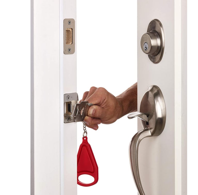 Do you know who has a key to the Airbnb, hotel, or apartment you're sleeping in? What if someone who has the key decides to let themselves in? This second lock is an added layer of security so you can sleep without worry, knowing no one will be able to get in — even if they do have a key. It's simple to install from the inside and blocks keys from unlocking the door from the outside. It's also small enough to travel with and well worth it for the security.