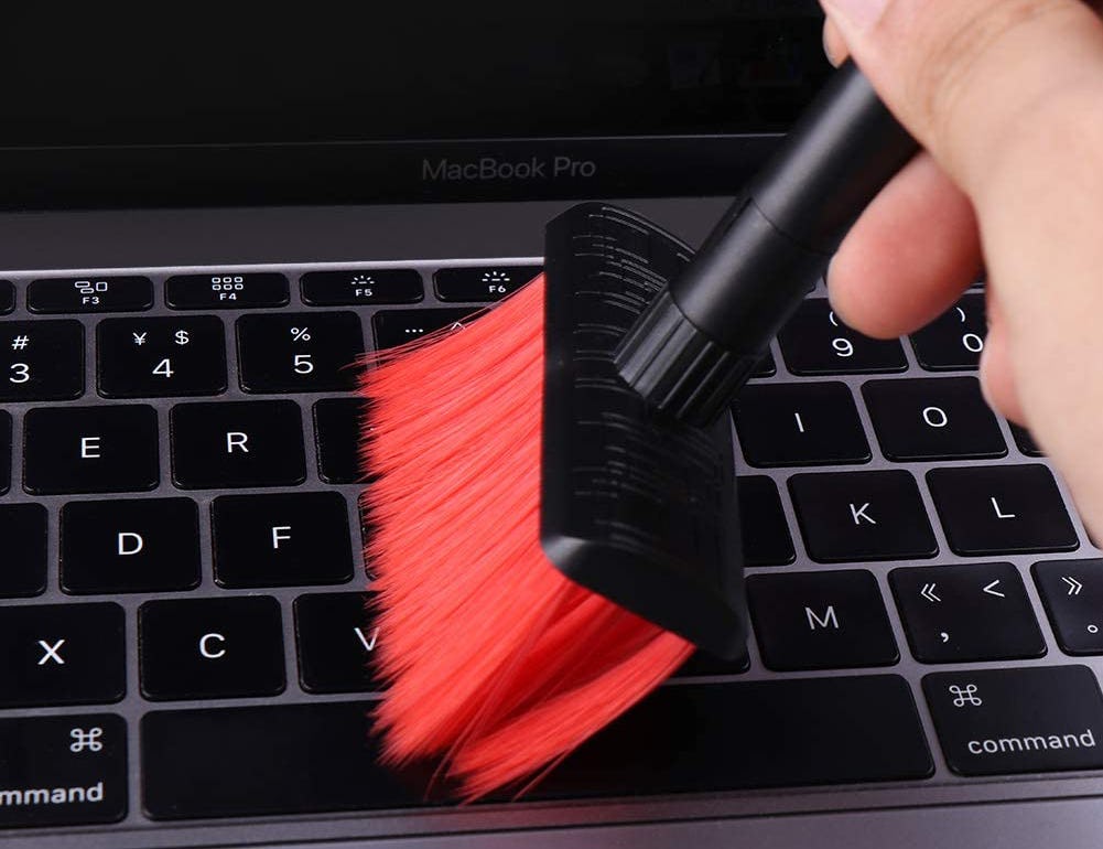 Give your keyboard a quick sweep with this handy mini keyboard brush. It eliminates dust and crumbs that have crept between the keys quickly. Pull the brush off the handle and you'll find a silicone pen that will get into crevices and clean off any crud the brush is too gentle to remove.