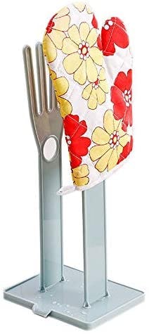Where do you hang your rubber gloves to dry? And the dish cloth? This cute little hand stand is here to help with that problem. It sits on the counter, raising two hands so it's cute when it's empty. But it's also a handy place to dry empty plastic bags, rubber gloves, pot holders, and towels. (Pull the towels through the hole.) It even has a drain to direct the water runoff.