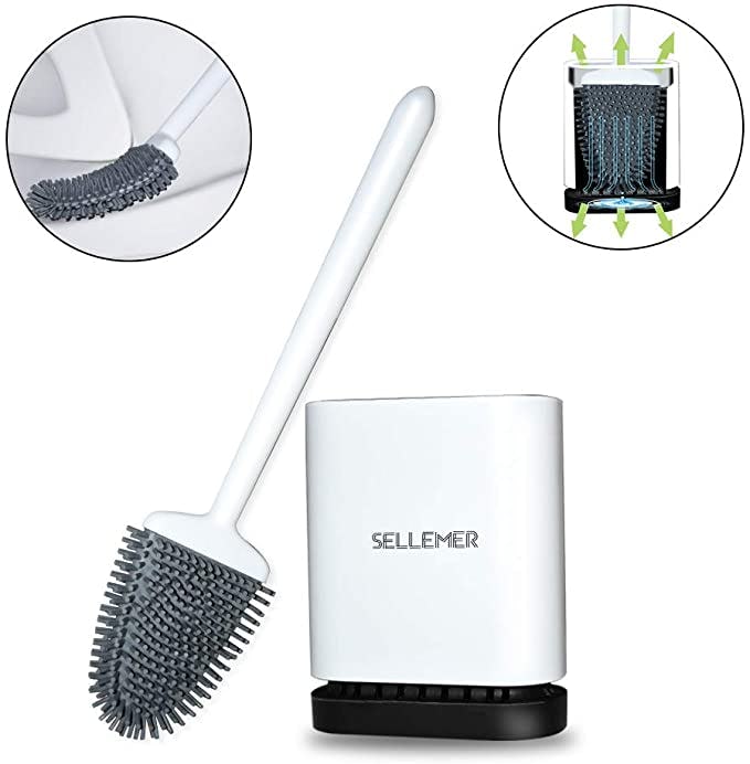 If you've ever wanted to throw away a toilet brush rather than clean it, you know that toilet brushes are flawed. This silicone scrubber is much better. It cleans without holding onto that grossness you are trying to get rid of. It doesn't even hold much water, and it bends to get into odd corners. The wall-mounted holder has a drain so it's a complete system.