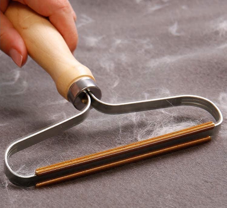 When sweaters start to look worn, it's usually because of a few pills that have accumulated. That's not a crisis! You just need to have the right tool handy to shave them off. This wooden-handled lint and pill remover with a copper shaving head is sized to fit easily into drawers. It not only shaves pills, it grabs pet hair and other debris off clothing quickly.