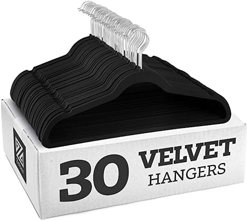 You can easily maximize your closet space by purchasing a set of these thin, nonslip velvet hangers, which have an overall rating of 4.8 out of five stars and more than 32,000 reviews. According to the manufacturer, each hanger can hold up to 10 pounds of clothing. And, as an added bonus, the metal hooks can rotate up to 360 degrees for fuss-free hanging.