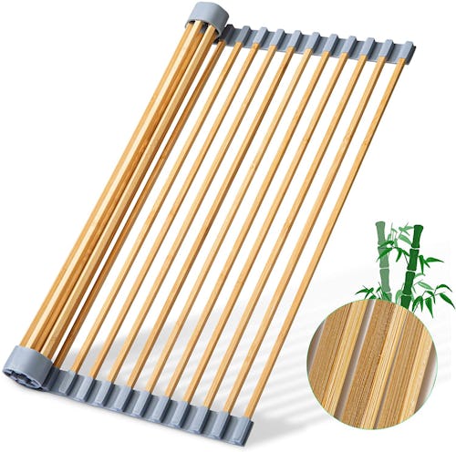 Short on kitchen counter space? Consider purchasing this foldable dish drying rack, which can conveniently be used over the sink. According to the manufacturer, the bamboo drying rack is strong enough to hold up to 20 pots and pans. One reviewer wrote, "Rolls up nicely, well made. Game changer for our single sink!!"