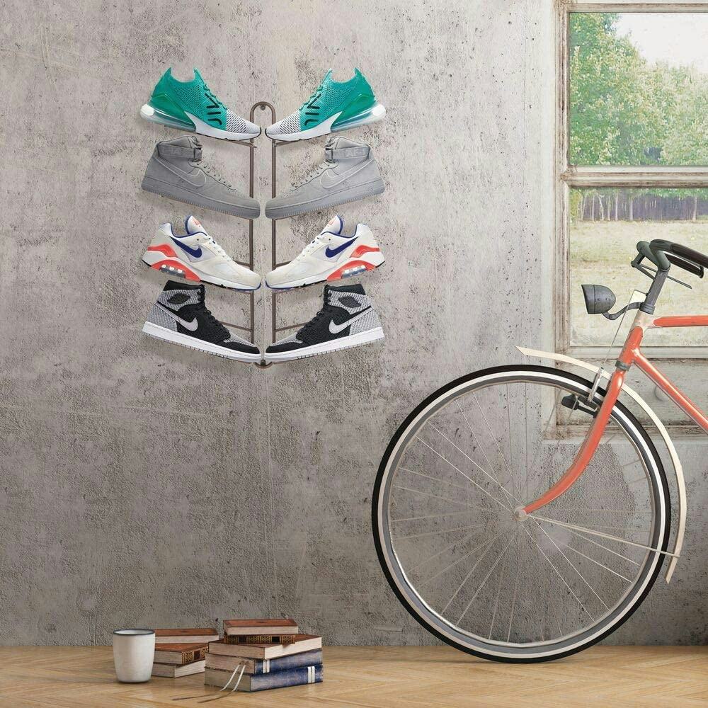 This hanging shoe rack is a great way to keep your shoes from cluttering the entryway to your home. Each steel rack can fit four pairs of shoes, and the slanted design of the platforms keeps them from sliding off. In addition to helping keeping your home organized, this is also a great way to display a cool sneaker collection.
