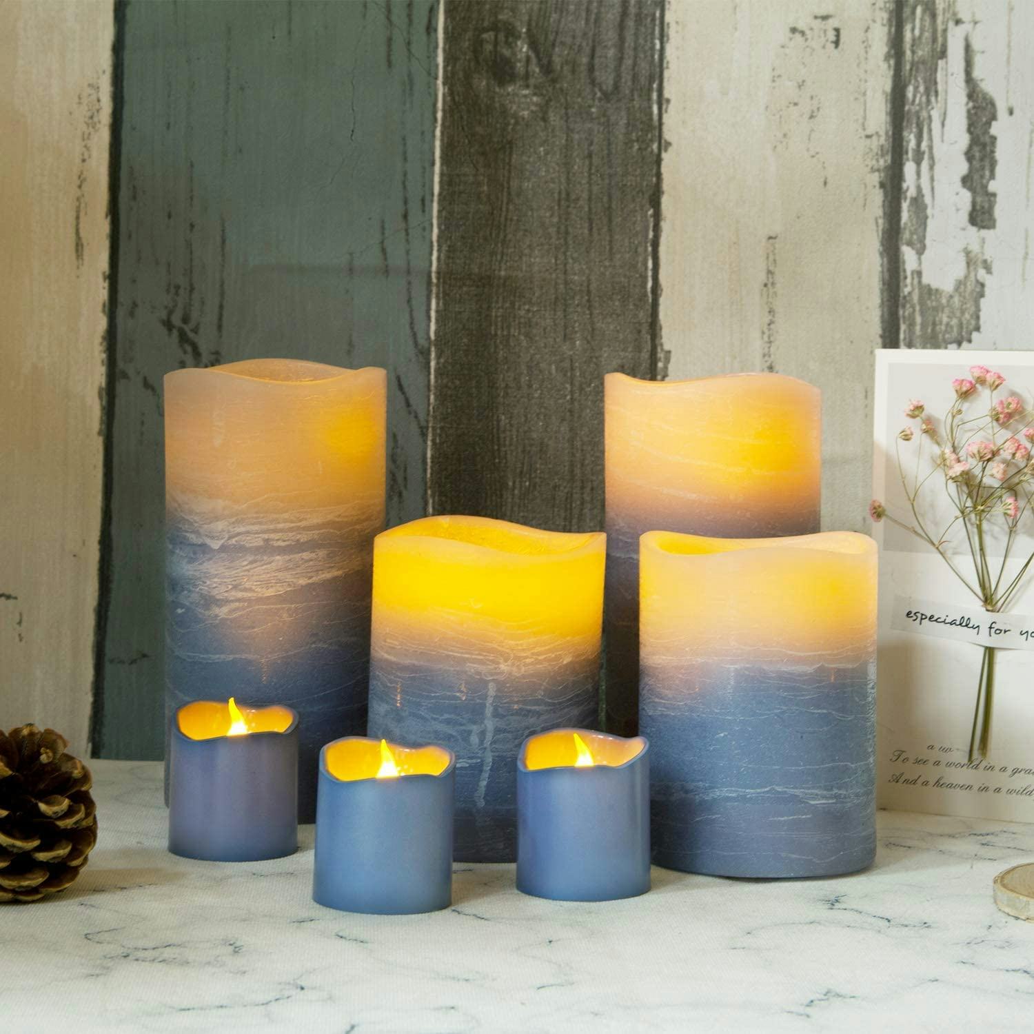 Set the mood without worrying about leaving your candles burning with this set of eight LED candles. Each set comes with two 6-inch pillars, two 4-inch pillars, and four votive-style candles, so you can create various levels of light in any space. These battery-powered flameless candles come with a remote control and can be set on timers lasting up to eight hours. Choose from 18 colors.