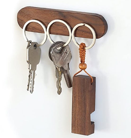Having a dedicated place to put your keys that’s right near the entry can save a lot of hassle when you’re trying to get out the door. This magnetic key rack is a simple and attractive tool to help build that habit. Available in light and dark wood, it’s backed with two-sided adhesive, so you can stick it directly to the wall.