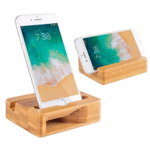 Set this bamboo phone stand on a desk or bedside table and it looks like a simple art object but it’s actually a very useful phone stand. It will hold your phone upright with the speakers facing down and amplify the sound using the beauty of physics rather than electronics. Or turn it around and lie it on it’s side and your phone becomes an appealing alarm clock.
