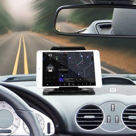 No heads-up-display in your car? This tablet mount is the next best thing because it will turn any tablet into a big, easy-to-see navigation and in-car entertainment system. It mounts to the dashboard and holds everything from a phone to a tablet. When it’s not in use, the top lies flat and the mount is hardly noticeable.