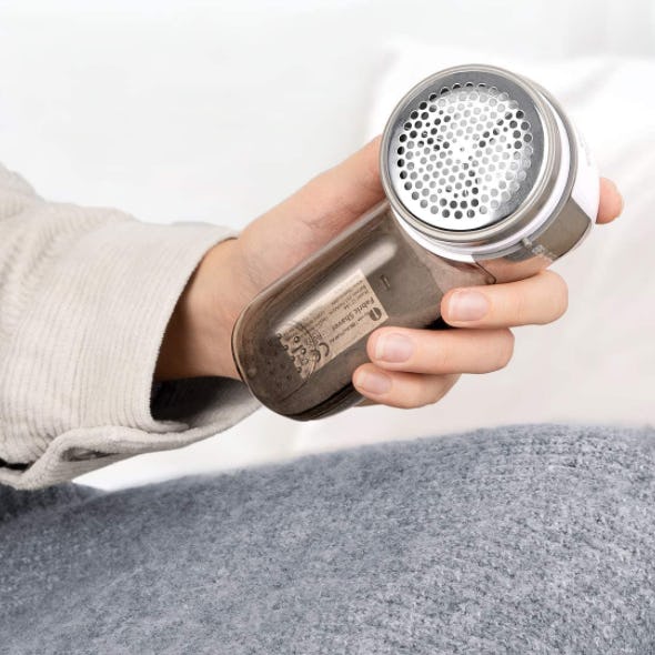 There comes a moment in the life of every sweater (jacket, blanket, or couch) when you think, “Does it look shabby?” Reach for this fabric shaver — with three shave heights, two speeds and three shaving hole sizes — and fix that in seconds. It seamlessly removes threads, pills, pet fur, and other shabby-making detritus so you look groomed and your sweaters look new. It fits beautifully in your hand and comes in four colors.